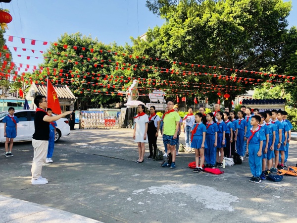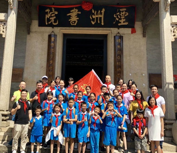 在新中國成立70周年、少先隊建隊70周年來臨之際,為加強對少年兒童的思想引領(lǐng),增強少先隊大隊委隊伍的凝聚力,引導(dǎo)少年兒童了解歷史、了解中山,培養(yǎng)少年兒童對黨和社會主義祖國的樸素感情,9月22日上午,沙朗小學(xué)大隊委以及家長代表齊聚西區(qū)煙洲書院、黃氏大宗祠,開展一次紅色假日活動。莫惠冰校長與學(xué)校大隊部輔導(dǎo)員、隊委及家長代表參加本次教育活動。