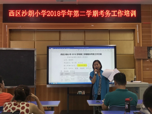 為了保證本學(xué)期期末考試順利進行,確保操作零失誤,6月26日下午4:30,西區(qū)沙朗小學(xué)全校老師齊聚在階梯室參加了2018年度第二學(xué)期考務(wù)會議。