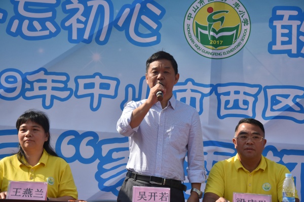 在莊嚴(yán)的升旗儀式之后,梁慶助校長(zhǎng)向全體師生作運(yùn)動(dòng)會(huì)開幕詞,接著是裁判員和運(yùn)動(dòng)員代表宣誓。最后由中山市西區(qū)教育事務(wù)指導(dǎo)中心主任吳開若宣布本次校運(yùn)會(huì)開幕。