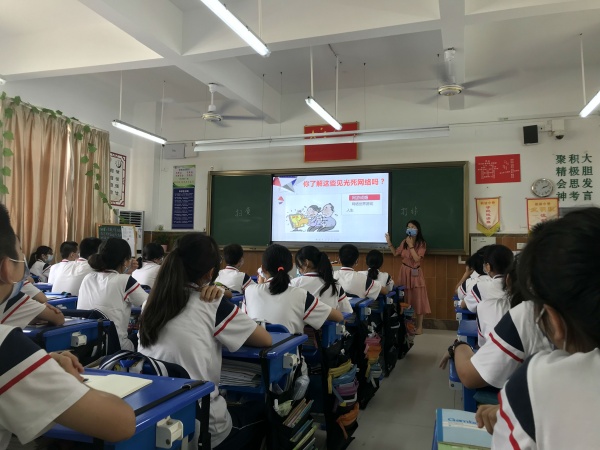 主題班會(huì)中,各班主任以圖片和文字的形式細(xì)心講解什么是“黃”與“非”,有針對(duì)性地引導(dǎo)和教育學(xué)生健康上網(wǎng),綠色閱讀,對(duì)涉黃的網(wǎng)頁網(wǎng)站大聲說“不”,自覺構(gòu)筑抵制黃色不健康內(nèi)容的“防火墻”;帶領(lǐng)學(xué)生了解掃黃打非的相關(guān)法律知識(shí);介紹負(fù)責(zé)治理“黃”與“非”的相關(guān)工作單位,并給出中山市電話舉報(bào)和信函舉報(bào)的聯(lián)系方式及地址,學(xué)生們大呼“學(xué)到真知識(shí)!”。