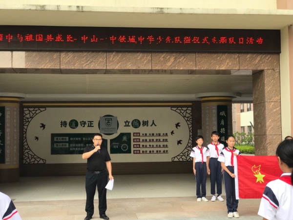為慶祝中華人民共和國成立70周年,紀念少先隊建隊70周年,喜迎少先隊廣東省第七次代表大會的召開,教育引導廣大少先隊員聽黨的話、跟黨走,用實際行動弘揚愛國主義精神,把紅色基因一代代傳下去,增強少先隊員光榮感,中山一中鐵城中學于2019年10月12日開展了少先隊“微儀式”主題隊日活動。