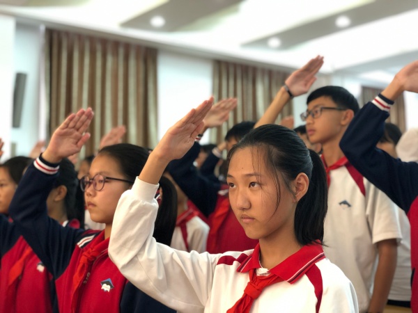 莊嚴(yán)地奏唱國(guó)歌后,代表們熱情澎湃地唱響少年先鋒隊(duì)隊(duì)歌,嘹亮的歌聲唱出了隊(duì)員們心中的那份自豪和榮耀。