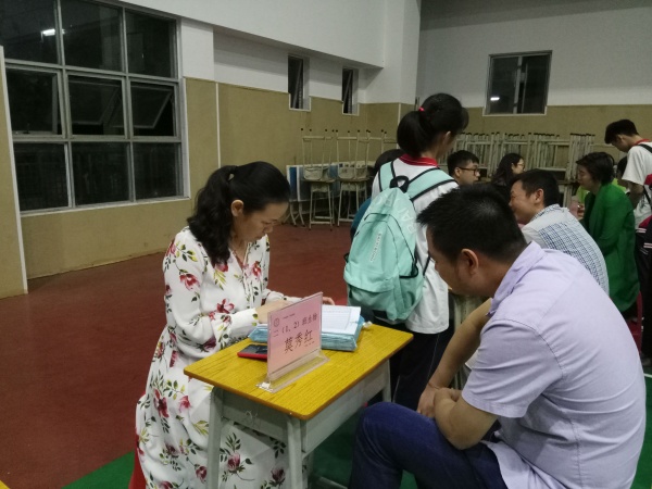 初二年級(jí)家長(zhǎng)會(huì)極具針對(duì)性,采取分層召開(kāi)的辦法。在三樓階梯室召開(kāi)了部分優(yōu)秀學(xué)生的家長(zhǎng)會(huì),首先由被評(píng)為初二年級(jí)學(xué)習(xí)標(biāo)兵的學(xué)生家長(zhǎng)為自己的小孩頒發(fā)獎(jiǎng)狀;然后,莫秀紅副校長(zhǎng)向家長(zhǎng)匯報(bào)了二個(gè)月來(lái)初二年級(jí)老師采用分層教學(xué)方法教學(xué),圍繞著德智體美勞全面均衡發(fā)展,讓每個(gè)學(xué)生都能得到進(jìn)步和提高。最后許耀秋年級(jí)主任向家長(zhǎng)提出了初二年級(jí)下一階段的教學(xué)目標(biāo)和任務(wù)。在體育館召開(kāi)另一部分學(xué)生家長(zhǎng)的現(xiàn)場(chǎng)診斷會(huì),為了讓孩子、家長(zhǎng)、學(xué)校一起努力向上成長(zhǎng),初二級(jí)所有任課教師到體育館與家長(zhǎng)溝通孩子情況,老師們?cè)隗w育館 “擺攤設(shè)點(diǎn)”,接受家長(zhǎng)與孩子一對(duì)一“把脈問(wèn)診”服務(wù)。