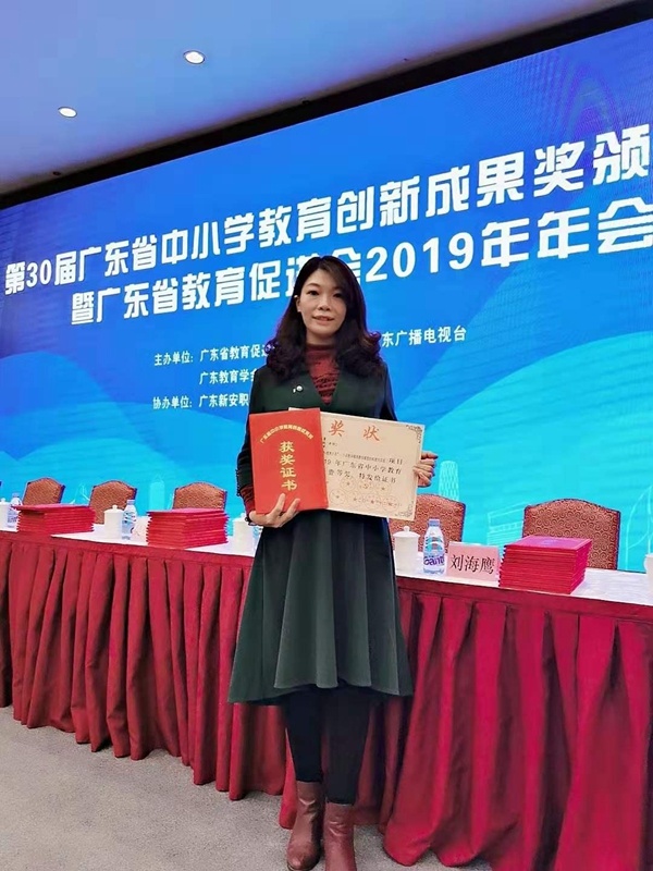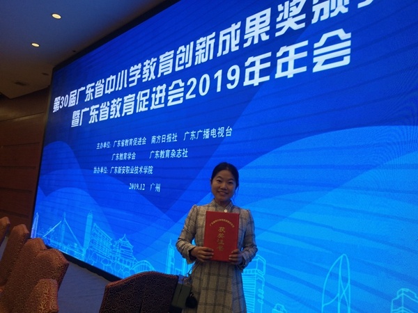 2019年12月27日,由廣東省教育促進(jìn)會(huì)、南方日?qǐng)?bào)社、廣東廣播電視臺(tái)、廣東教育學(xué)會(huì)、廣東教育雜志社聯(lián)合主辦,廣東新安職業(yè)技術(shù)學(xué)院協(xié)辦的第30屆廣東省中小學(xué)教育創(chuàng)新成果獎(jiǎng)?lì)C獎(jiǎng)大會(huì)在廣州舉行。“‘四元聯(lián)動(dòng)-技術(shù)介導(dǎo)’:小學(xué)數(shù)學(xué)精準(zhǔn)教學(xué)模型的構(gòu)建與實(shí)踐”項(xiàng)目榮獲一等獎(jiǎng),西區(qū)鐵城小學(xué)副校長石麗君作為代表出席了此次活動(dòng)并上臺(tái)領(lǐng)獎(jiǎng)。