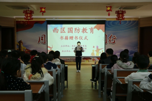 最后,西區(qū)黨工委分管武裝部領導陳飛國委員、教育事務指導中心劉海英副主任、德育專干蘇文森為西區(qū)各校贈送國防教育書籍。參加活動的鐵城小學校長侯潔表示,這次贈書活動意義重大,它不僅勉勵西區(qū)學子要從小心懷祖國,更是引導廣大師生珍惜和平、居安思危,為實現中華民族偉大復興中國夢而努力奮斗!