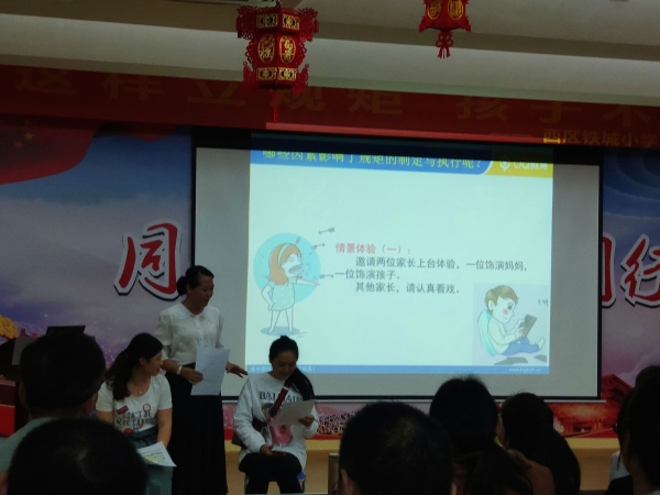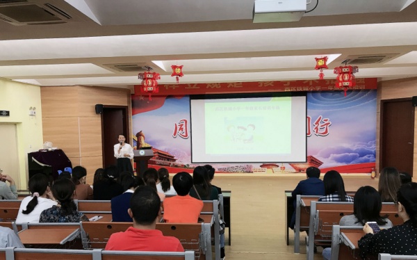 11月21日晚,西區(qū)鐵城小學德育處組織開展了一年級家長培訓,共有逾百名家長來到學校報告廳參加學習。