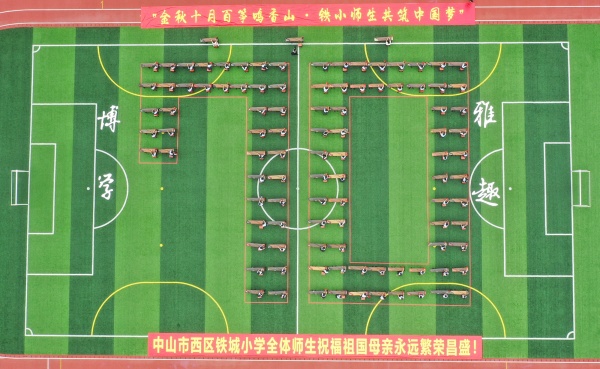 據(jù)悉,此次活動(dòng)以“金秋十月百箏鳴香山·鐵小師生共筑中國(guó)夢(mèng)”為主題,于10月15日在學(xué)校操場(chǎng)舉行。百架古箏的“70”造型,整齊的著裝,悠揚(yáng)的古箏,百人齊聚于操場(chǎng)中央,撥弦彈奏,吟誦嘆詠,整個(gè)校園都流淌著傳統(tǒng)文化的音符,場(chǎng)面蔚然壯觀。蒙學(xué)經(jīng)典《三字經(jīng)》,古典詩(shī)詞《憫農(nóng)》和意蘊(yùn)悠遠(yuǎn)的《靜夜思》,鐵小學(xué)子們將中華傳統(tǒng)經(jīng)典文化以獨(dú)特的藝術(shù)形式一一呈現(xiàn),禮獻(xiàn)祖國(guó),開創(chuàng)了中山市中小學(xué)生百人古箏合奏之歷史。