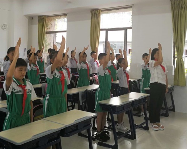 除此之外,西區(qū)鐵城小學(xué)少先隊(duì)員還開展了“向國旗敬禮”活動(dòng)。鐵城小學(xué)少先隊(duì)輔導(dǎo)員李海英老師表示,開展這一系列的愛國教育活動(dòng),引導(dǎo)少先隊(duì)員們?yōu)樾轮袊?0周年獻(xiàn)上自己的一份祝福,也希望在這一次意義深刻的活動(dòng)中,少先隊(duì)員們能銘記歷史,爭當(dāng)從小愛國、立志報(bào)國的好少年。