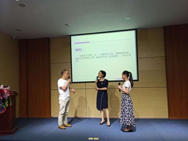 通過學(xué)生與老師、家長與老師的案例演練,老師們了解到溝通的技巧。理論與實踐相結(jié)合的模擬場面讓現(xiàn)場氣氛推上高潮。老師們積極參與,與彭老師傾情互動,精彩表演溝通中的片段故事,現(xiàn)場笑聲不斷,其樂融融。于詼諧幽默中傳授溝通的藝術(shù),在輕松愉悅中提高自己的素養(yǎng)。 其中,在案例二“當(dāng)家長與老師發(fā)生沖突時,班主任應(yīng)該怎么做?”中,路海云校長將自己的親身經(jīng)歷帶進(jìn)本次培訓(xùn),讓老師們明白,處理任何糾紛,學(xué)會傾聽,堅持底線,積極溝通,更容易達(dá)成一致。