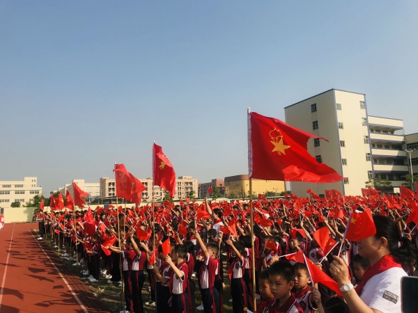 “祖國,我愛你”同學們舉起右手,迎著陽光向祖國發(fā)出最真摯的呼號。鮮艷的紅領(lǐng)巾飄揚在前胸,將愛國熱情傾述于心間。
