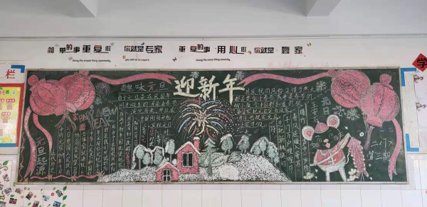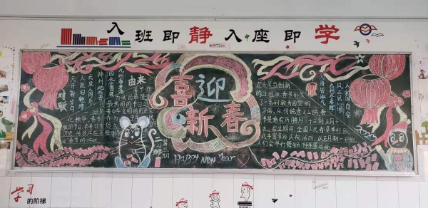 此次活動(dòng)彰顯了班集體的智慧和團(tuán)隊(duì)合作的力量,它不僅是建設(shè)良好的班風(fēng),為學(xué)生創(chuàng)造自我動(dòng)手能力成長(zhǎng)的一項(xiàng)重要舉措,也是體現(xiàn)班級(jí)文化 的一面鏡子。在出版期間,它的制作過(guò)程也成為培養(yǎng)學(xué)生們自我能力、合作能力有效的提升手段。全校師生熱情高漲,共同協(xié)作,力求本班的板報(bào)圖文設(shè)計(jì)更加完美,凸顯班級(jí)特色。無(wú)論從形式,還是版面設(shè)計(jì)、內(nèi)容等方面無(wú)不展現(xiàn)出師生們對(duì)新年的期盼與向往。