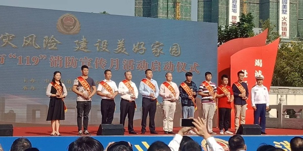 啟動(dòng)儀式上,首先由中山市市消防安全委員會(huì)副主任、中山市消防支隊(duì)隊(duì)長(zhǎng)盧學(xué)任同志致辭。盧學(xué)任隊(duì)長(zhǎng)指出,舉行2019年度“消防安全宣傳月”活動(dòng)啟動(dòng)儀式,目的是激發(fā)全市人民關(guān)注消防,認(rèn)識(shí)消防,學(xué)習(xí)消防等,提高全民消防安全意識(shí),營(yíng)造“防范火災(zāi)風(fēng)險(xiǎn),建設(shè)美好家園”的濃厚工作氛圍,積極推動(dòng)消防宣傳月主題宣傳活動(dòng)縱深開(kāi)展。盧學(xué)任隊(duì)長(zhǎng)對(duì)消防安全工作提出了具體的要求,要將消安全隱患消除在萌芽狀態(tài),從而全面提升消防全管理能力和水平。社區(qū)代表宣讀了創(chuàng)建美好家園消防工作倡議書(shū)。楊文龍副市長(zhǎng)對(duì)消防安全工作作了重要的講話和布置,要求各部門(mén)高度重視“消防安全宣傳月”的工作,認(rèn)真落實(shí)到位。楊副市長(zhǎng)還和與會(huì)領(lǐng)導(dǎo)一起啟動(dòng)了“119消防宣傳月”的活動(dòng)。啟動(dòng)儀式后,與會(huì)領(lǐng)導(dǎo)為獲得“熱心消防公益事業(yè)先進(jìn)集體、先進(jìn)個(gè)人和優(yōu)秀社區(qū)宣傳大使”進(jìn)行頒獎(jiǎng)。并觀看了“三合一”消防主題小品節(jié)目。消防宣傳月活動(dòng)現(xiàn)場(chǎng)還設(shè)置了器材展示區(qū),AR、VR體驗(yàn)區(qū)、逃生體驗(yàn)區(qū)、消防知識(shí)咨詢點(diǎn)等多個(gè)展區(qū),讓市民和廣浩學(xué)校師生更深入了解消防安全知識(shí)。