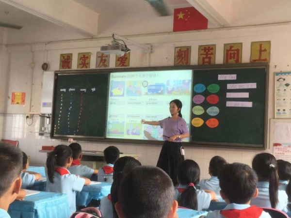 在上課前五分鐘,全體英語科組的老師已來到四年級四班做好聽課準備。本次優(yōu)質課,教室的前后坐滿了聽課老師,每一位老師在聽課過程中認真做好聽課記錄。聽課老師的專注與認真,大家可以看出講課老師講課的生動與教學魅力。何潔老師在廣浩學校四(4)班上四年級第四單元My day的單詞與句型的結合。課堂中何潔老師采用充分的朗讀、生動的生活故事,別樣的教學風格,調動了學生的學習興趣,使學生的求知欲得到了導讀挖掘。何潔老師循循善誘的教學方式,不僅吸引著孩子們好奇的目光,更是把孩子們帶入了愉快的氛圍中學習。整節(jié)課的教學過程中何潔老師都是鼓勵學生主動參與合作交流。充分的展示了學生才是課堂真正的主人。黃裕慈老師整堂課始終面帶微笑,給予了學生親和力,這點是非常難得的。老師的肢體語言也用得非常好,師生互動非常融洽。中學部的葉老師巧妙的處理教材,利用學生感興趣的明星把學生帶入課堂中,以學生為主體,以任務形式的教學模式,讓學生獨立自主的完成教學任務,讓學生輕松的掌握知識。下課后,廣浩學校全體英語老師在教務處許主任以及英語科組長的帶領下在會議室認真組織老師們對三堂優(yōu)質課進行了精彩的點評。