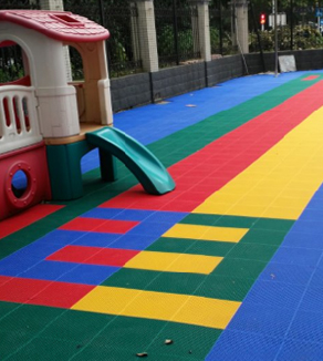 防伸縮鎖扣式結(jié)構(gòu),防止熱漲冷縮,耐候性極高,不怕日曬高溫、雨淋潮濕、冰雪嚴寒、永不翹曲剝落變形。沒有氣候地域限制,雨后場地不積水。