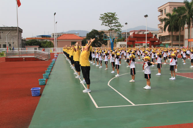 我校以“一切為了學(xué)生的健康成長”為宗旨,以學(xué)生快樂、健康為目標(biāo),全面深入開展體育大課間活動, 鼓勵小學(xué)生走進(jìn)陽光、走向操場、走入大自然,積極參加形式多樣、生動活潑、健康向上的體育運(yùn)動。今年6月,為了進(jìn)一步推動我校體育大間活動深入開展,從而輻射到全鎮(zhèn),我校向全鎮(zhèn)公民辦中小學(xué)展示的體育大課間活動。到場觀摩的有鎮(zhèn)教育局的全體領(lǐng)導(dǎo)、各小學(xué)校校長、主管體育主任、體育老師、部分家長代表等300多人。整齊的動作、明快的節(jié)奏贏得了大家的美譽(yù)。今年教師節(jié)表彰大會上,大逕小學(xué)還榮獲體育特色學(xué)校稱號。