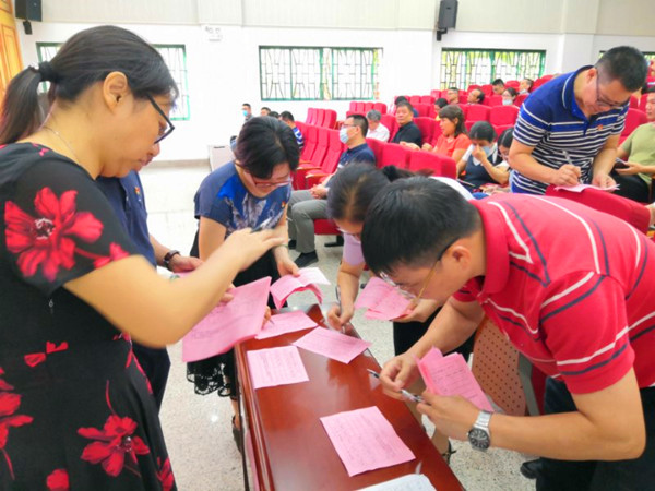 大會的第一部分,由何啟亮委員宣讀倫教街道黨工委及匯賢中學(xué)黨總支決定對優(yōu)秀黨員進行表彰的通知,并公布了優(yōu)秀黨員的評選條件和要求。接著各黨小組按組織要求進行了民主選舉。