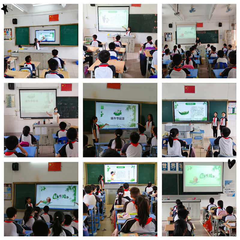 校園內(nèi),大隊部利用升旗儀式和LED大屏幕宣傳欄,積極營造濃厚的宣傳氛圍,追溯端午淵源,宣傳端午節(jié)的文化與習(xí)俗,讓學(xué)生充分了解“端午節(jié)”的有關(guān)知識。