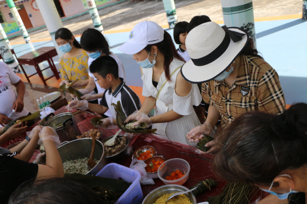 新圩小學為了傳承歷史文化,在這個傳統(tǒng)節(jié)日即將來臨之際,6月23日下午,在校園里開展以“濃濃粽香飄,暖暖家校情”的“我們的節(jié)日.端午節(jié)”家校共育主題活動。這個活動得到學校家委會的大力支持,在家委會總會長的帶領下,發(fā)動家長朋友們積極參與,主動去購買那些新鮮的食材、裹粽子的材料和用具,一大堆食物擺得滿滿的,好像在等待著脫胎換骨的神奇變化!