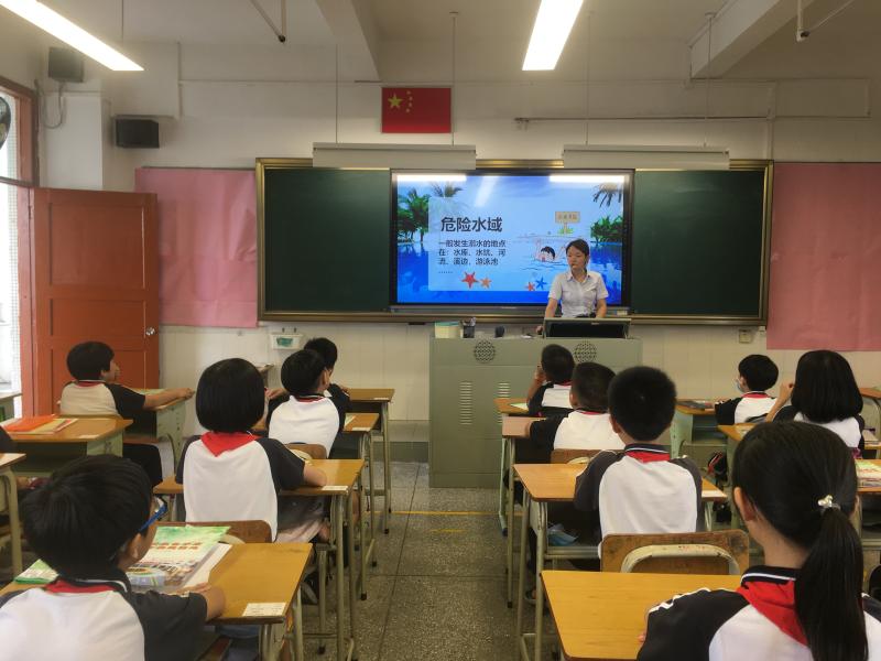 接著,交通副校長劉炎校長與法制、禁毒副校長曹少強校長通過廣播給孩子們上了一節(jié)生動的法制交通安全課講話,采取了社會當前的具體案例進行了分析。在防溺水安全主題班會中,用慘痛的事故案例教育學生安全無小事,時刻牢記安全,讓安全的警鐘長鳴,在安全的懷抱中成長。隨后學校大隊委也宣讀倡議書,提醒同學們假期注意安全,還針對假期安全對全體學生做出了具體的要求。孩子們認真聆聽,紛紛表示要遵紀守法,過一個平安、快樂的假期。