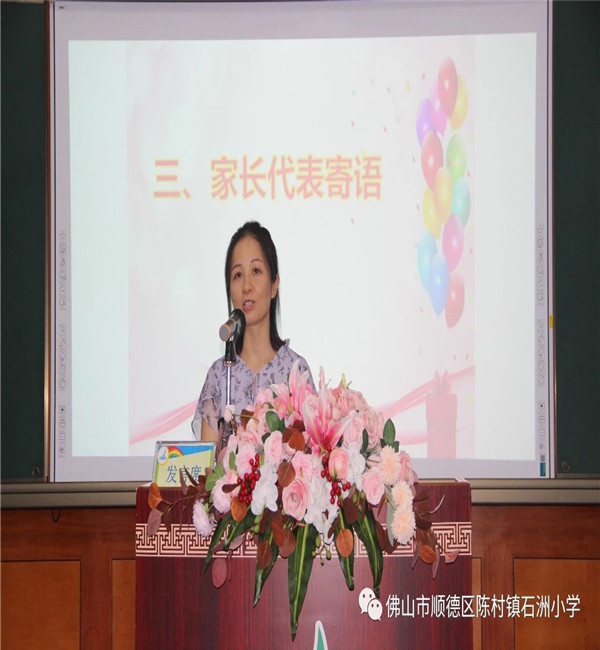 六年(1)班的陳泳錕同學(xué)代表畢業(yè)生作了畢業(yè)感言,感言中對母校充滿了感恩,并對未來要走的路充滿了期待。六年(2)班的關(guān)皓家長代表寄語全體畢業(yè)生,他告訴孩子們畢業(yè)不是休止符,而是充滿希望和奮斗的起點(diǎn),他期望陽光少年們樂觀、進(jìn)取,為母校增光添彩。