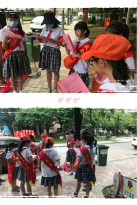 參與人員由五年1班梁梓珊、胡思穎、劉濤,五年2班羅佳佳、楊詩艷,四年1班胡心怡、張紫琪、朱佳穎,四年2班潘芷菡、黃樂怡組成,同學(xué)們帶齊裝備,清掃了公園內(nèi)的垃圾,大力宣傳“保護環(huán)境,關(guān)注垃圾分類”。