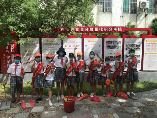 夏日炎炎,蟬聲唧唧,暑假即將來臨,2020年7月18日莊頭小學(xué)的十名“秀美小衛(wèi)士”在大隊輔導(dǎo)員老師的帶領(lǐng)下來到了美麗的莊頭村開展“垃圾分類我先行,社區(qū)清潔齊動手”的爭做“新時代好少年”社會實踐活動。