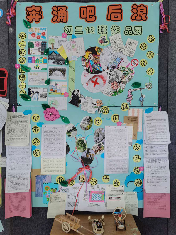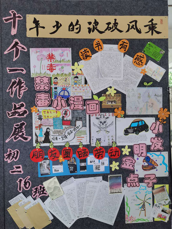 本次暑假 “十個一”作品展示活動項(xiàng)目有:1、“書信立志 不負(fù)韶華”。2、“小小發(fā)明家”。3、“愛祖國,誦經(jīng)典”――中華傳統(tǒng)文化經(jīng)典誦讀。4、“疫情當(dāng)下――我可以做的是 ”征文活動。5、“勞動一夏”。6、“走出校園,體驗(yàn)社會”實(shí)踐調(diào)查。7、“禁毒無小事,常掛心上記”漫畫作品。8、“印象陳村”明信片制作。記錄陳村鎮(zhèn)情,感受陳村發(fā)展。9、“陳村色彩”主題攝影。10、讀一本好書,創(chuàng)書香校園。本次暑假“十個一”活動形式多樣,內(nèi)容豐富,給同學(xué)們提供了一個鍛煉與展示的平臺,得到了同學(xué)們的積極響應(yīng)。課間期間,初一、初二級的同學(xué)們有序地參觀了暑假“十個一”作品展覽。濃墨重彩的書畫作品,心靈手巧的手工佳作,精心排版的板報(bào),讓同學(xué)們大開眼界,情不自禁地發(fā)出陣陣贊嘆。每年的暑假“十個一”作品,同學(xué)們都能夠別出心裁,充分發(fā)揮豐富的想象力和創(chuàng)造力,用心血凝聚成勞動的成果。