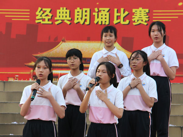 2020年,是全面建成小康社會(huì)的決勝之年,是奪取新時(shí)代中國(guó)特色社會(huì)主義偉大勝利的關(guān)鍵之年,是中國(guó)現(xiàn)代化強(qiáng)國(guó)征途的啟航之年。為實(shí)現(xiàn)“立德樹(shù)人”教育目標(biāo),培養(yǎng)德智體美全面發(fā)展的新時(shí)代中國(guó)社會(huì)主義建設(shè)者和接班人,弘揚(yáng)學(xué)生的“愛(ài)國(guó)心,報(bào)國(guó)情,強(qiáng)國(guó)志”,豐富校園文化生活,打造書香校園。陳村鎮(zhèn)初級(jí)中學(xué)初二級(jí)于2020年11月5日下午,在學(xué)校操場(chǎng)舉辦了“禮贊中國(guó)新時(shí)代,弘揚(yáng)我輩強(qiáng)國(guó)志”的朗誦比賽。陳村鎮(zhèn)初級(jí)中學(xué)謝文忠校長(zhǎng)、專職書記梁兆倫副書記、李日和副校長(zhǎng)、汪立云副校長(zhǎng)、教務(wù)處楊麗桃主任、總務(wù)處林鵬副主任出席了本次比賽活動(dòng)。初二級(jí)全體語(yǔ)文老師擔(dān)任評(píng)委。