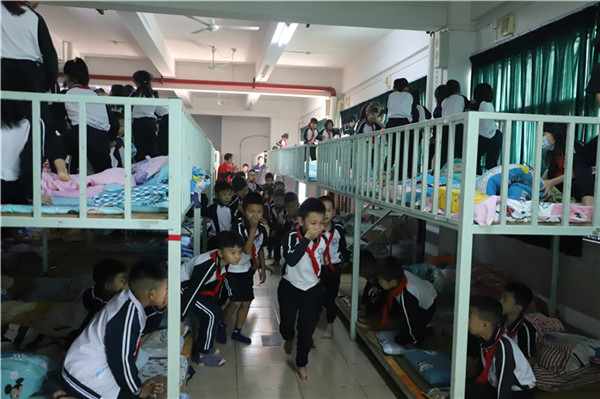 2020年11月9日,初冬的暖陽灑遍校園,在全國第二十八屆消防日這個特殊的日子里,為切實加強學校安全工作,提高廣大師生安全防范意識、安全疏散與自救能力,保障師生生命安全,打造平安校園,梁釗林紀念小學開展“關(guān)注消防 生命至上”專項教育活動。此項活動分為早上國旗下講話、睡室安全疏散演練、主題班會課、課室逃生疏散演練。