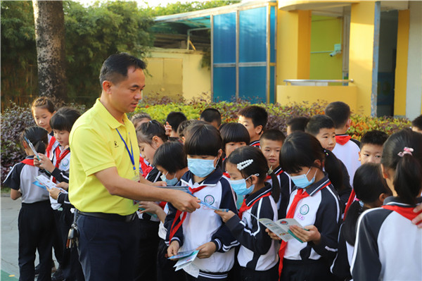 全國消防日適逢星期一,黃家強主任結(jié)合消防安全進行國旗下講話。黃主任指出,同學們課間應該文明活動,注意安全。