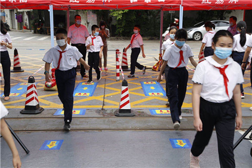 “如棕色的大地一般”敦實(shí)穩(wěn)重,鑄就敢干實(shí)干匠心。在抗“疫”的戰(zhàn)場(chǎng)上,科學(xué)防疫,專事專辦。一方面把好校園的第一道關(guān)口――校門(mén)。7點(diǎn)10分后,返校學(xué)生陸續(xù)抵達(dá)校門(mén)口。在老師的指引下,學(xué)生保持前后1米距離,在指定入校通道自覺(jué)排隊(duì),提交健康卡,配合體溫檢測(cè),順利入校。另一方面,確?!皟牲c(diǎn)一線”的防控要求,學(xué)校早已與配餐公司落實(shí)了一套周詳、安全的配餐方案,保證學(xué)生吃得開(kāi)心、吃得健康。此外,加強(qiáng)學(xué)生愛(ài)國(guó)主義教育,規(guī)范行為與習(xí)慣,做好線上到線下的心理調(diào)適,幫助學(xué)生快速切換和適應(yīng)新的學(xué)習(xí)、生活模式,確保學(xué)生身心健康。最后,全體學(xué)生分年級(jí)分班開(kāi)展有序、規(guī)范的錯(cuò)峰放學(xué)。