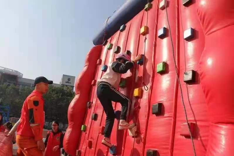 高空逃生技巧是一項(xiàng)非常重要的技巧。同學(xué)們在教練的講解下,紛紛進(jìn)行高空逃生,同學(xué)們勇敢地爬到了最高點(diǎn)再下來。