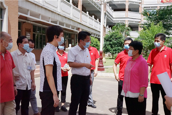 7月2日上午,順德區(qū)區(qū)委副書記、區(qū)政法委書記王勇、區(qū)教育局局長閔樂萍一行到容山中學(xué)開展高考防疫專項(xiàng)督查工作。容山中學(xué)校長、考點(diǎn)主考區(qū)淑玲及相關(guān)行政陪同領(lǐng)導(dǎo)到校園相關(guān)高考功能場室進(jìn)行巡視。