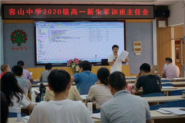 主管德育的高一落級(jí)行政肖楚熊副主任為班主任們一一解讀了軍訓(xùn)各項(xiàng)文件,尤其是2020級(jí)高一軍訓(xùn)具體工作指引,安排了軍訓(xùn)前、軍訓(xùn)入營(yíng)當(dāng)天、軍訓(xùn)期間的各項(xiàng)工作任務(wù),期望能給高一新生一個(gè)完美的軍訓(xùn)體驗(yàn)!心理教師周昀則從專業(yè)視角出發(fā)為班主任呈現(xiàn)了一場(chǎng)精彩的分享。容山中學(xué)歷來(lái)重視心理工作,重視學(xué)生的心理健康教育,教師們?cè)趯I(yè)心理教師的指引下會(huì)更好地完成學(xué)生的心理建設(shè)。心理科組還為學(xué)生準(zhǔn)備了第一次班會(huì)課和班主任的祝福語(yǔ)卡片,期待一進(jìn)門學(xué)生就能感受到容山中學(xué)對(duì)他們的愛和期許,更加努力,不負(fù)韶華!