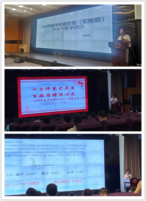 三位老師分別從2020年高考物理全國1卷的實(shí)驗(yàn)題22、23題,計(jì)算題24、25題、選修題33題的改卷情況與全體教師分享交流。從解題過程到錯(cuò)因分析,從得分情況到解題規(guī)范,從改卷心得到教學(xué)啟示,都做了非常詳盡的闡述,與會(huì)教師表示獲益匪淺。
