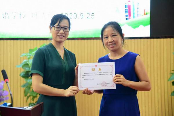 為容桂外國(guó)語(yǔ)學(xué)校葉秀紅老師頒發(fā)證書(shū)