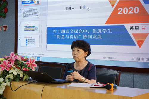 在講座環(huán)節(jié),王薔教授以“在主題意義探究中,促進(jìn)學(xué)生‘得意與得語’協(xié)同發(fā)展”為題,高屋建瓴地提出語言的教育要避免鐘擺效應(yīng),走極端,在教學(xué)傳承上,切忌“Throw the baby out with the bath water”。教師要以始終關(guān)注培養(yǎng)學(xué)生正確的價(jià)值觀、必備品格及關(guān)鍵能力的核心素養(yǎng)為己任。王教授強(qiáng)調(diào)英語課程目標(biāo)的轉(zhuǎn)型,廣大教師要關(guān)注學(xué)科的育人價(jià)值、 學(xué)生的發(fā)展思維和核心素養(yǎng)的落地,在重組課程內(nèi)容的同時(shí)要注重以主題為引領(lǐng)、以語篇為依托。為了讓講座更深入淺出,王教授以具體的課堂教案為范例,點(diǎn)對點(diǎn)講解如何在實(shí)際教學(xué)中探究主題意義,落實(shí)各項(xiàng)教育教學(xué)目標(biāo)。