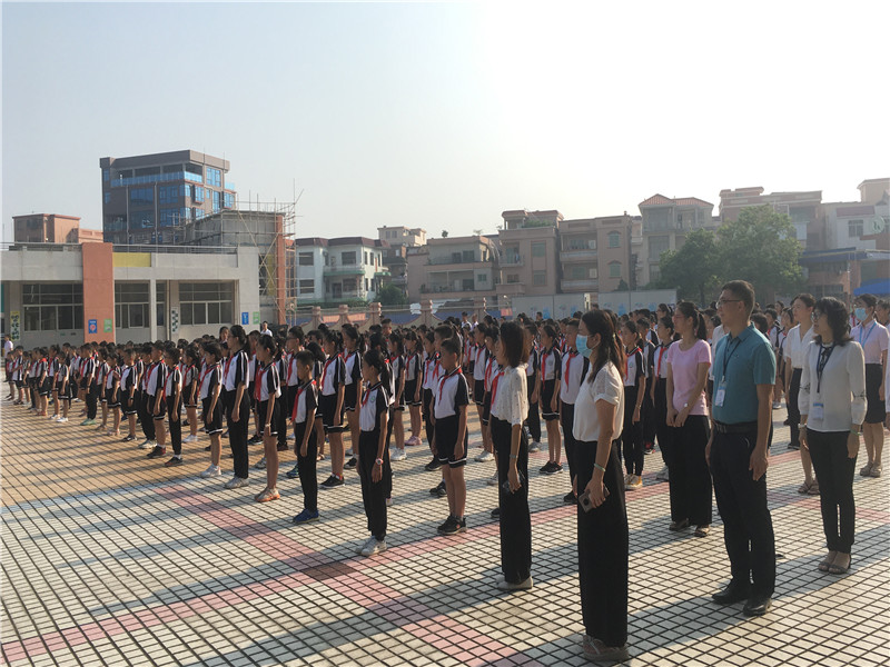 由于場(chǎng)地范圍有限,但是同學(xué)們參加典禮的熱情無(wú)限。只見(jiàn)同學(xué)們一個(gè)個(gè)揚(yáng)著笑臉,有序地到指定地點(diǎn)站好,靜待典禮開(kāi)始,整個(gè)會(huì)場(chǎng)寂靜安然,秩序良好。典禮由麥國(guó)才主任主持,首先是升旗儀式,五星紅旗冉冉升起,整齊的隊(duì)禮,莊嚴(yán)的儀式,傳達(dá)出全體師生對(duì)祖國(guó)的尊重與熱愛(ài)!典禮在莊嚴(yán)的國(guó)歌聲中拉開(kāi)了序幕。