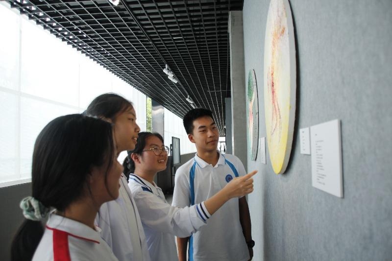 高一20班學(xué)生巫海洋看完展覽后表示,他對其中《后現(xiàn)代生活-維米爾與愛馬仕》這幅作品最欣賞,因為該幅畫作色彩鮮艷,畫中畫的創(chuàng)意十分新穎,讓人心情瞬間變得愉悅。 順德區(qū)羅定邦中學(xué)設(shè)辦展覽為在校青少年增加便利的藝術(shù)生活,在緊張的文化學(xué)習氛圍下找尋突破,通過展覽對藝術(shù)院校的了解,給與學(xué)生更多升學(xué)的選擇。
