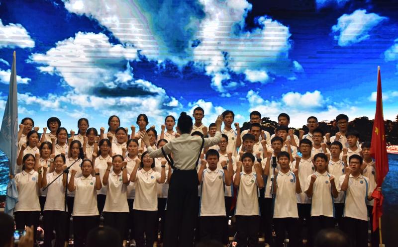 9月29日晚,在均安鎮(zhèn)團(tuán)委支持下,均安中學(xué)舉行高一紅歌比賽。高一年級師生齊聚一堂,將君玉精神、將對祖國的熱愛與感激,融入歌聲當(dāng)中,展現(xiàn)君玉把頌歌獻(xiàn)給祖國華誕,獻(xiàn)給人民,獻(xiàn)給親愛的黨。