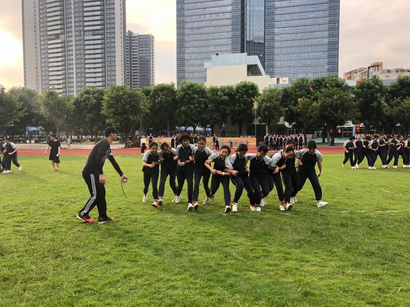 在比賽開始之前,體育科何嘉政老師對比賽規(guī)則進(jìn)行講解。各班分為男子組和女子組,每組由11人組成。根據(jù)事先訓(xùn)練和抽簽的順序,第一場比賽由女子組1班、2班和3班上場,第二場比賽是女子組4班、5班和6班。哨聲響起,各班參賽隊員奮力前沖,經(jīng)過一番角逐,3班的女同學(xué)步調(diào)一致,健步如飛,勢如破竹,用最短的時間獲得了女子組冠軍。