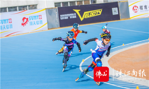 運動員們進行輪滑速滑比賽。/珠江商報記者周焯杰攝