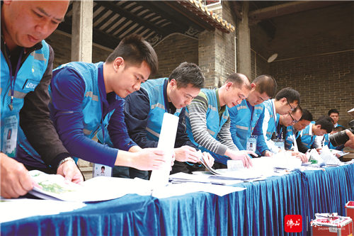 北滘桃村村改最終以99.7%的同意率通過(guò)。圖為村改工作人員正在點(diǎn)票。/北滘村改辦供圖