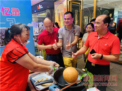 社區(qū)文化節(jié)集市有45個居民自發(fā)組織的文創(chuàng)攤位,帶來了傳統(tǒng)文化藝術和現(xiàn)代創(chuàng)意產品,加上三洪奇大煎堆、桃姐蒸糕、黃龍冬瓜、鮮制龜苓膏等鄉(xiāng)村特色的農產品和美食,讓居民以及新北滘人感受到了自上世紀80年代起,人們在三洪奇渡頭擺攤買賣的昔日繁華光景。