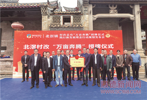 昨日,完成萬(wàn)畝攻堅(jiān)任務(wù)的北滘鎮(zhèn)獲頒順德村改“萬(wàn)畝奔騰”獎(jiǎng)牌。/珠江商報(bào)記者周焯杰攝