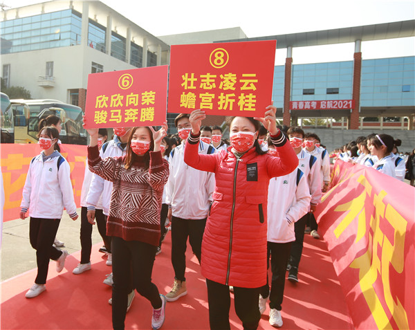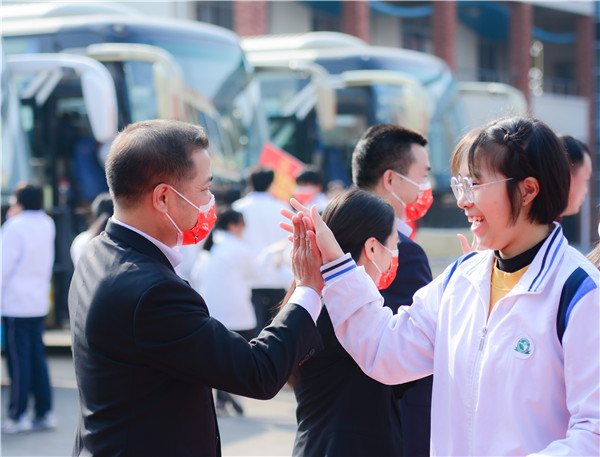 最后,伴隨著學(xué)校全體行政、學(xué)弟學(xué)妹的祝福聲,高三全體師生在“奮斗2020,每個人都了不起!搏擊2021,送你一朵小紅花!”的夾道紅幅標(biāo)語中以自信堅(jiān)定、激情昂揚(yáng)的奮斗姿態(tài)登上大巴,奔赴戰(zhàn)場!