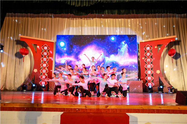 游園活動結(jié)束后,令人翹首以盼的年度文藝匯演開始了。一段熱力四射的舞蹈串燒開場舞和歡騰喜慶的歌曲《祝福你》,拉開文藝匯演的帷幕,迅速燃爆全場。