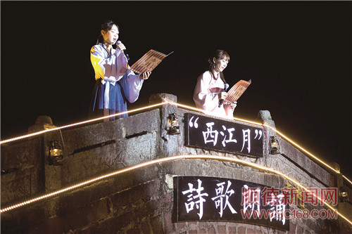 在見(jiàn)龍橋上舉辦詩(shī)歌朗誦會(huì),伴著朗朗月色,一首首本土原創(chuàng)詩(shī)歌作品的朗誦,為古橋的夜增添了一股詩(shī)意;