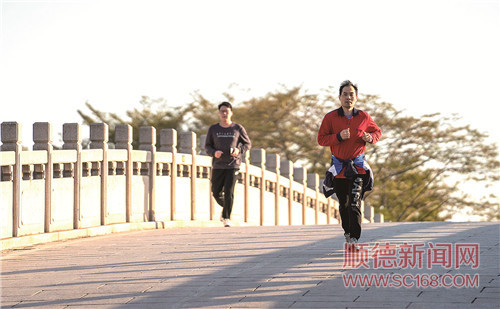 昨日,順德陽光重現(xiàn),市民在順峰山公園跑步鍛煉。/珠江商報(bào)記者周焯杰攝