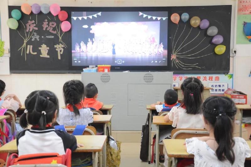 今年的兒童節(jié)節(jié)目豐富,游戲多多。葫蘆娃來襲,樂隊演奏、教師葫蘆絲獨奏、學生獨唱;游戲聽歌辨曲、心球相傳、“疫”問一答……節(jié)目與游戲“輪番上證”,妙趣橫生。更“吸睛”的是,學校教師們專門為孩子們排練了舞蹈《你笑起來真好看+天天向上》,看著平日嚴肅的老師們開心地舞蹈,孩子們更是樂開了花。